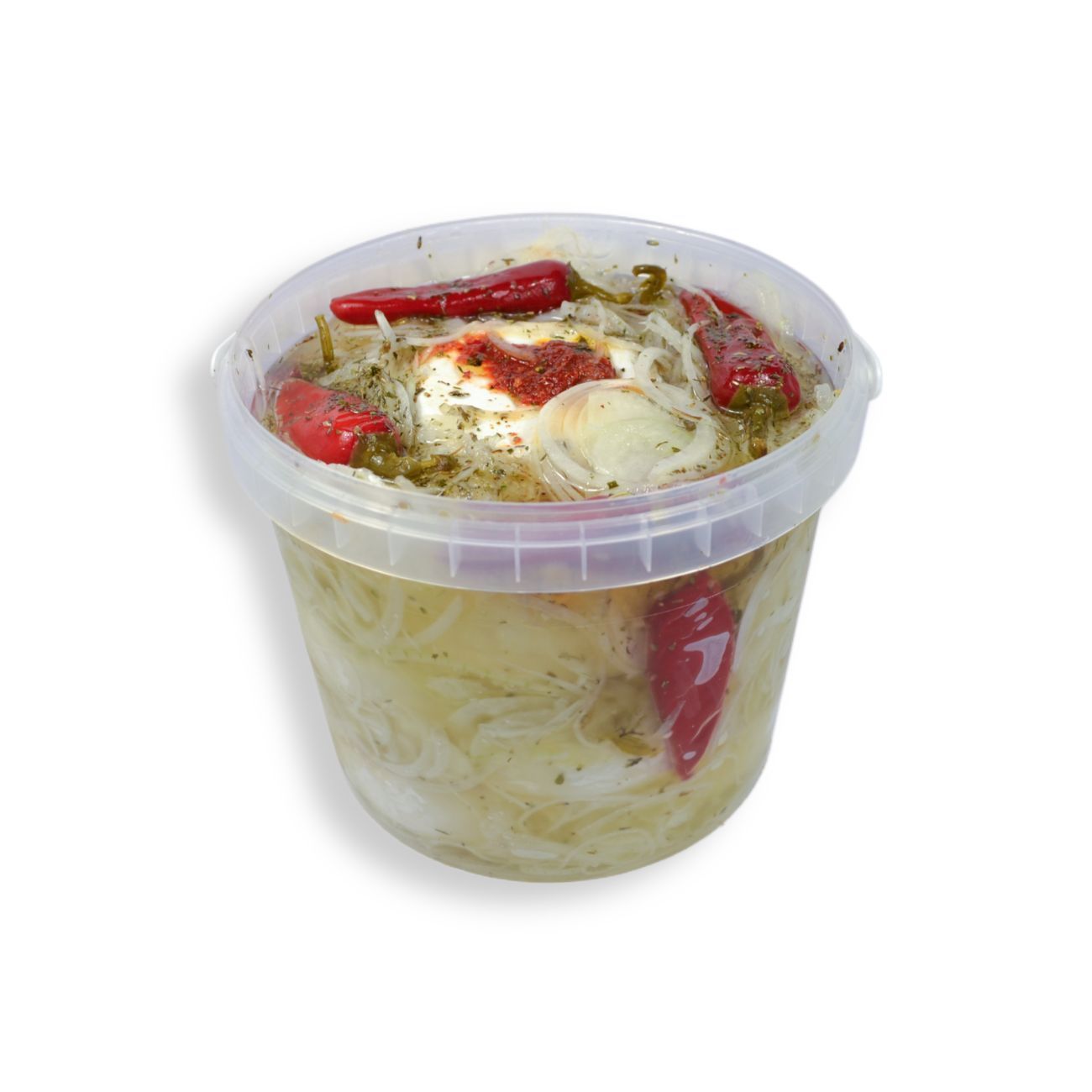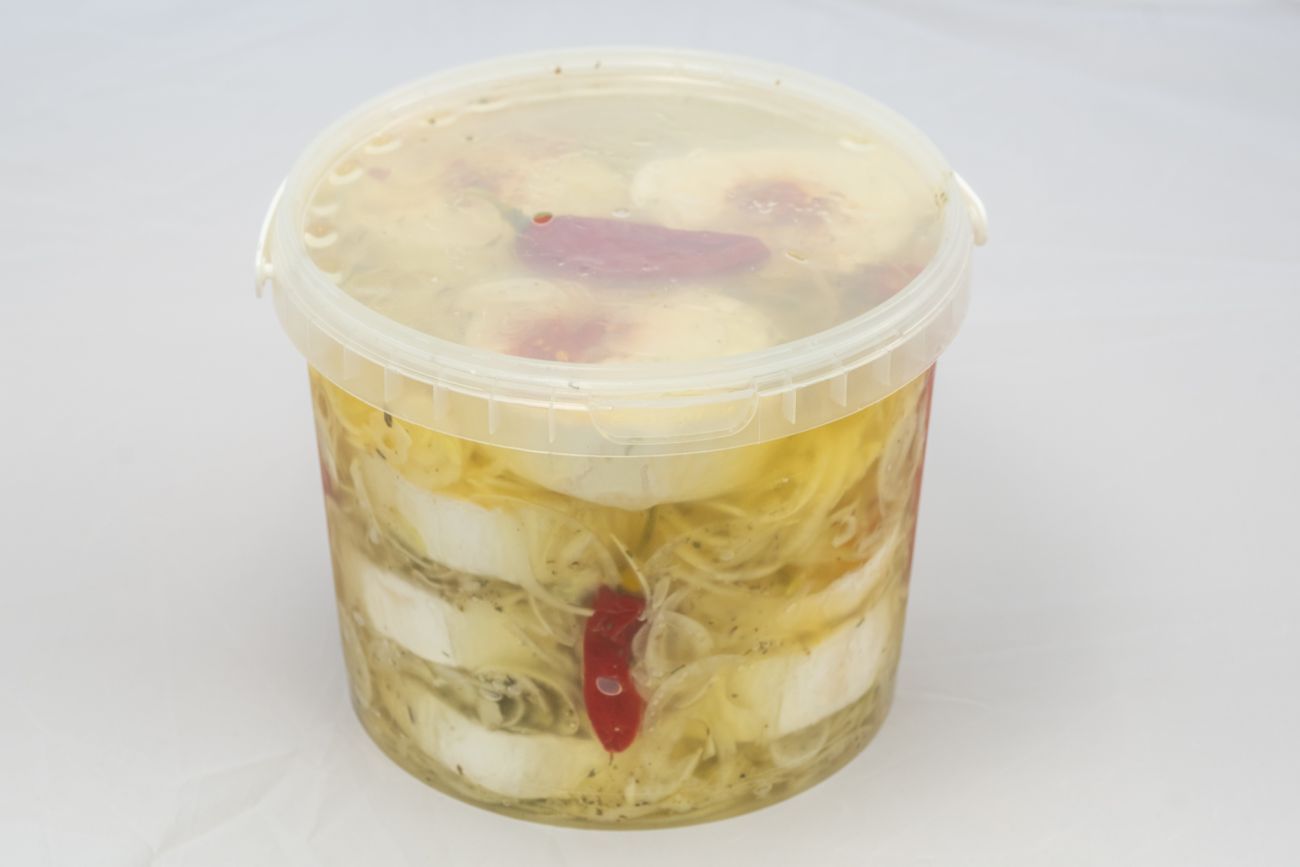 sýr Hermelín, čerstvá cibule, feferony, řepkový olej, provensálské koření